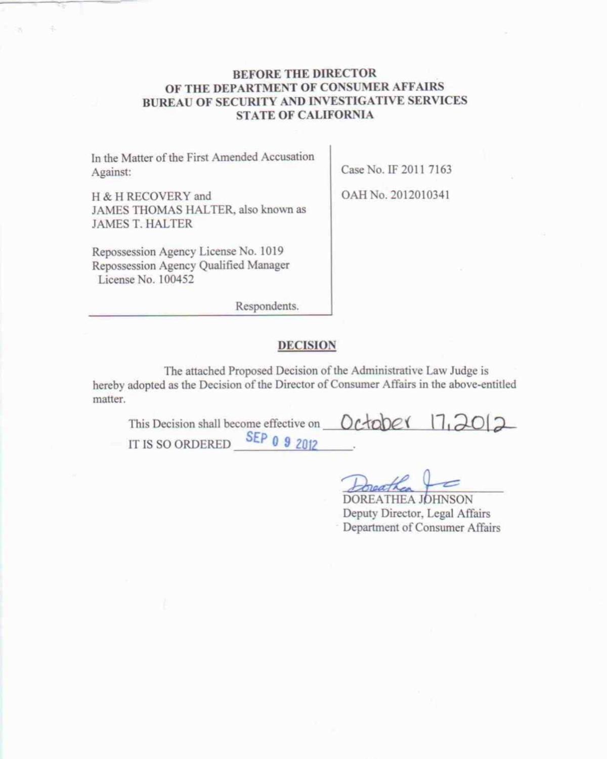 California Repossession Agency License Test